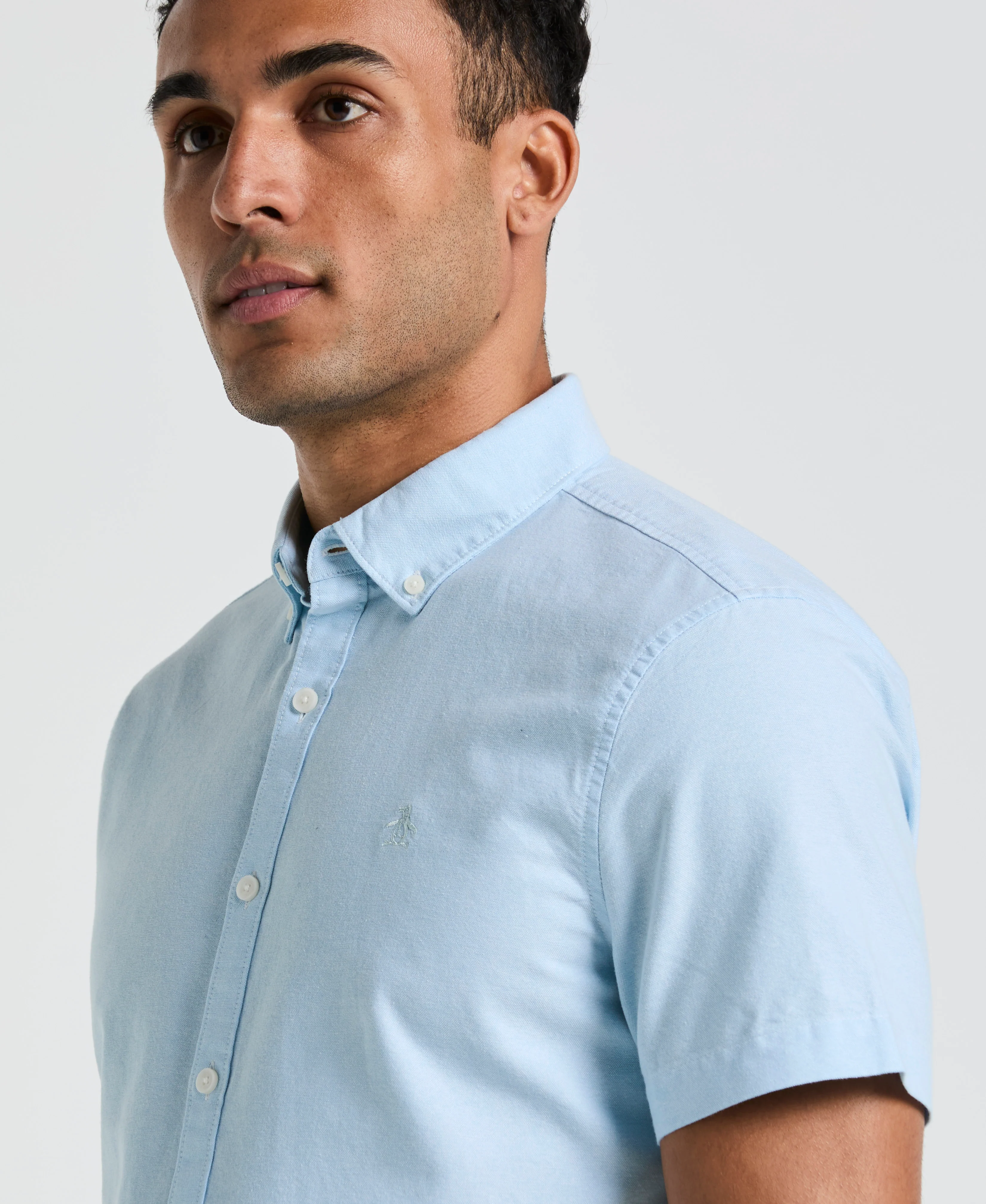 A smart wardrobe essential, this Original Penguin men’s button-down shirt has a versatile solid-colored design perfect for any casual outing. It’s made with Oxford fabric, which is crafted with a braided weave for impressive durability and a subtle textured look. The slim-fitting shirt is enhanced with stretch for a flexible fit, and it has a button-down collar to keep your look polished as you work through your errands or enjoy a relaxing night out on the town. Our mascot Pete the penguin appears as a logo on the chest, adding a fun finishing touch.