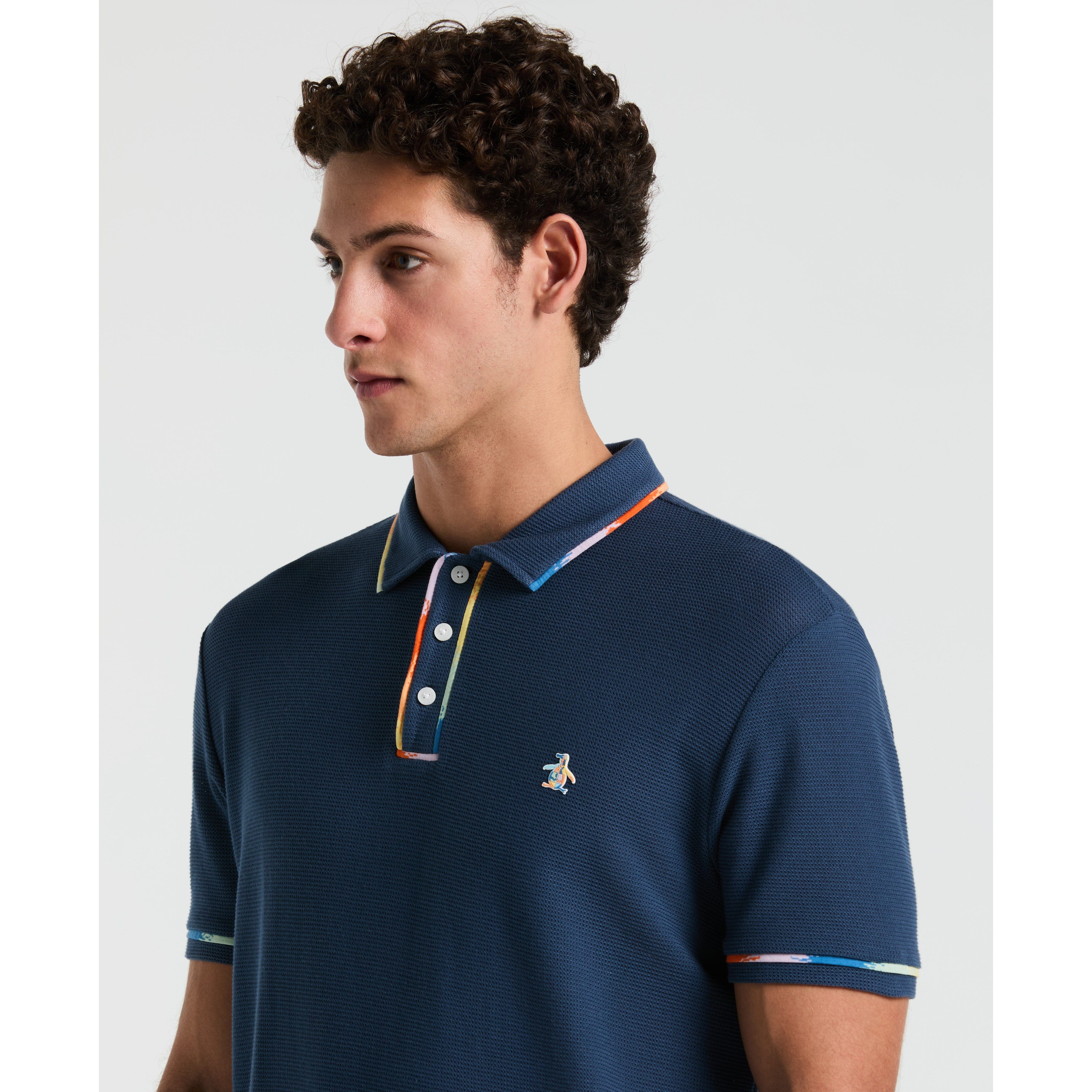 Stay the fashionable life of the party at your next Pride celebration with this men's polo from Original Penguin. Featuring rainbow tipping for a touch of festive style, this polo shirt for men also has a classic design that gives your casual wear a polished touch. The cotton mesh fabric helps you feel cool and comfortable through all-day wear.